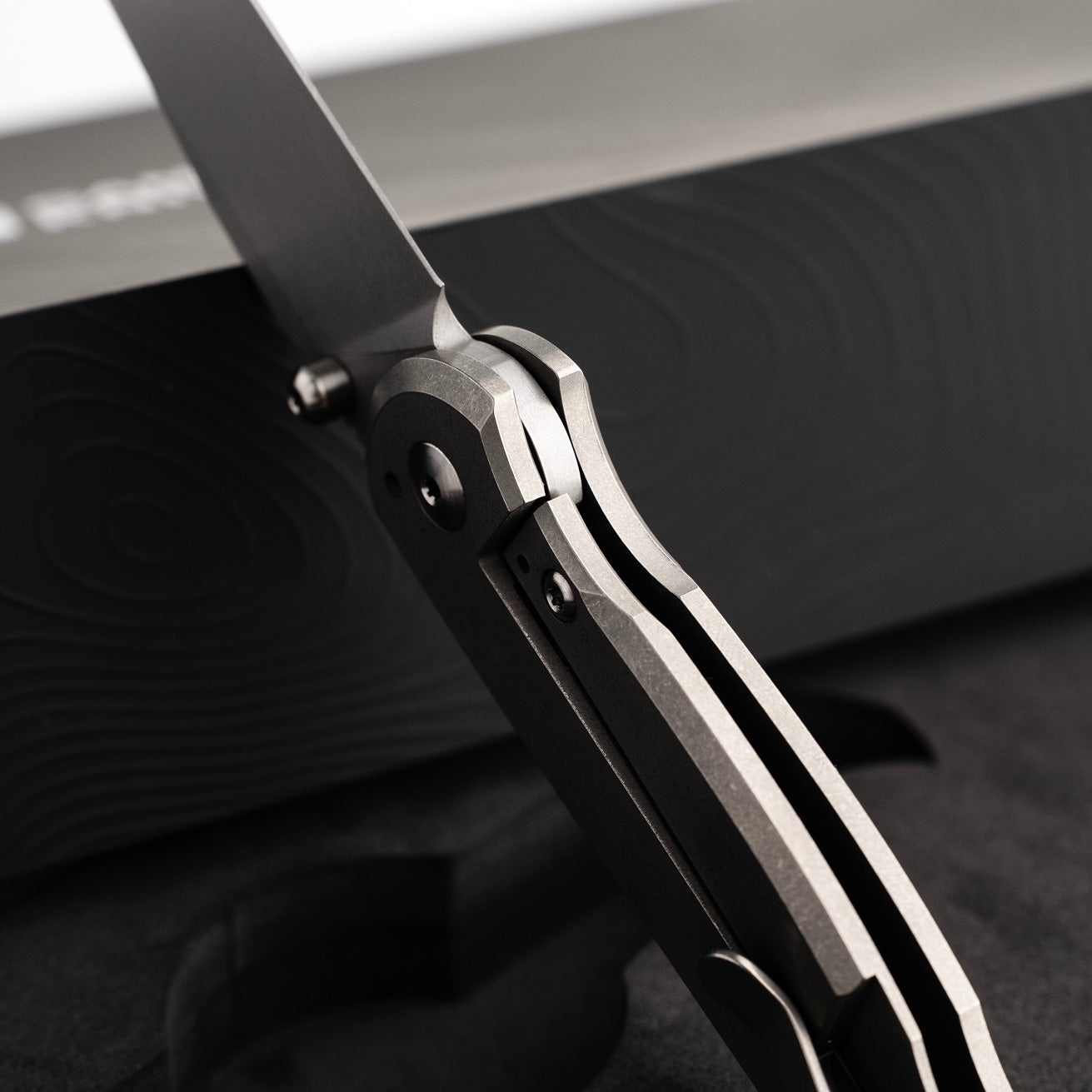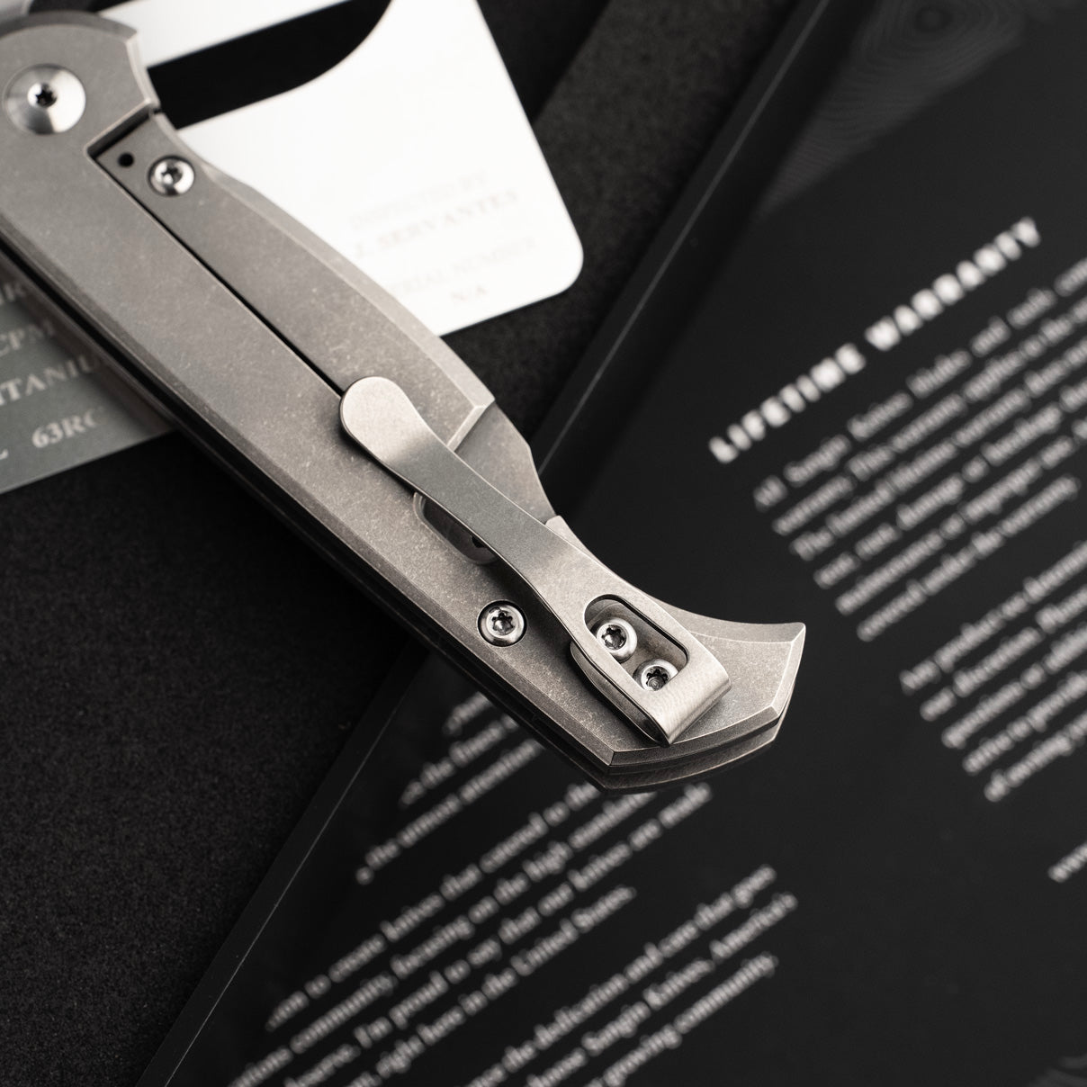 A perfectly balanced 8.0″ overall length, housing a tough 3.5″ CPM MAGNACUT blade, tuned to a sharp yet resilient 63 Rockwell hardness. At 0.145″ thick, the blade blends durability and precision, riding on silky Bronze Phosphorus Washers for crisp, smooth deployment. The 4.5″ titanium handle, crafted from Grade 5 6AL‑4V, speaks of strength, lightness, and refined ergonomics. Weighing just 4.5 oz, the Admiral 2 carries its beef without burden.