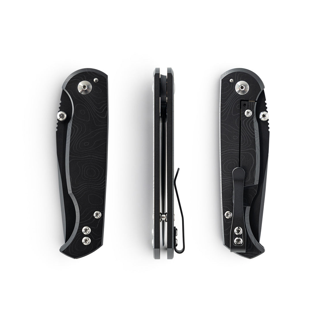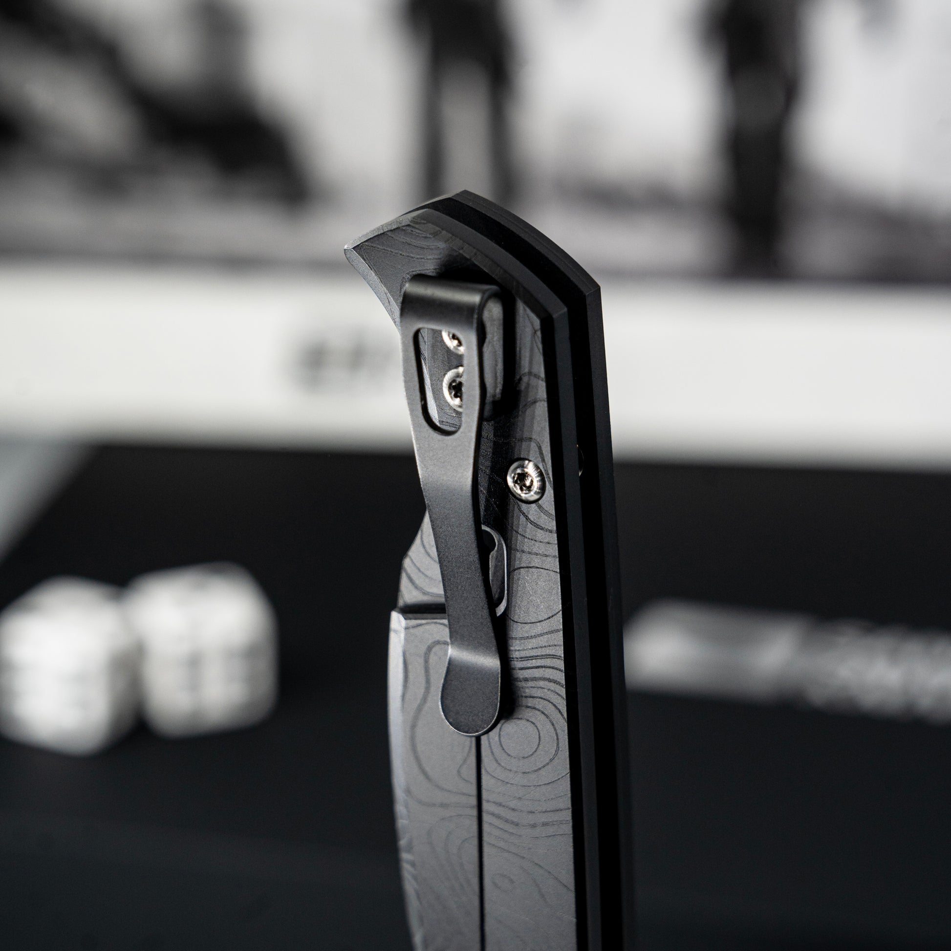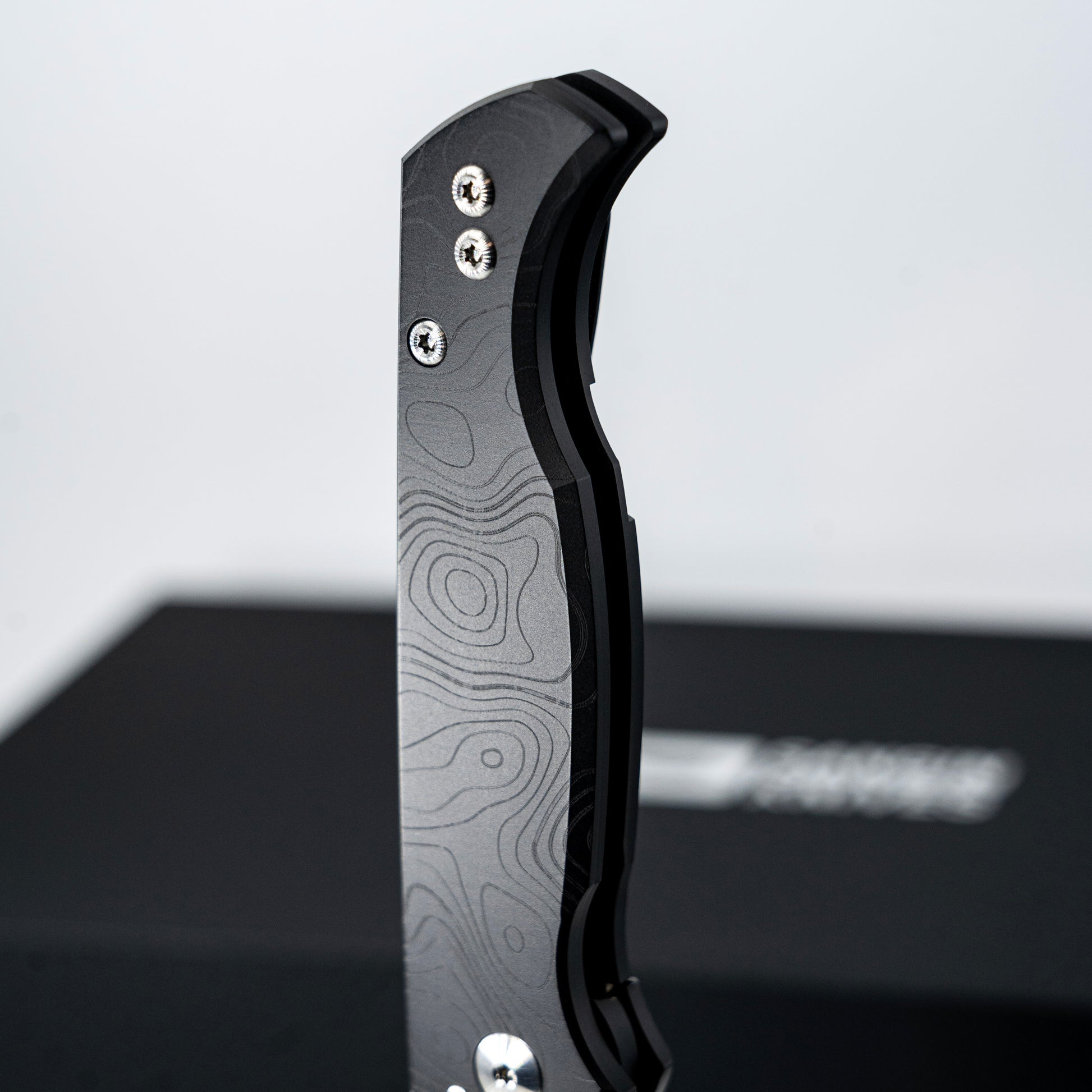 Finished in a rugged black KG Gunkote for increased durability and corrosion resistance, the Admiral 2 is built to thrive in the harshest conditions. The titanium handle features a topographical pattern pulled directly from the Sangin region of Afghanistan—the same design carried across our packaging—serving as a reminder of where our story began and the terrain that shaped it.