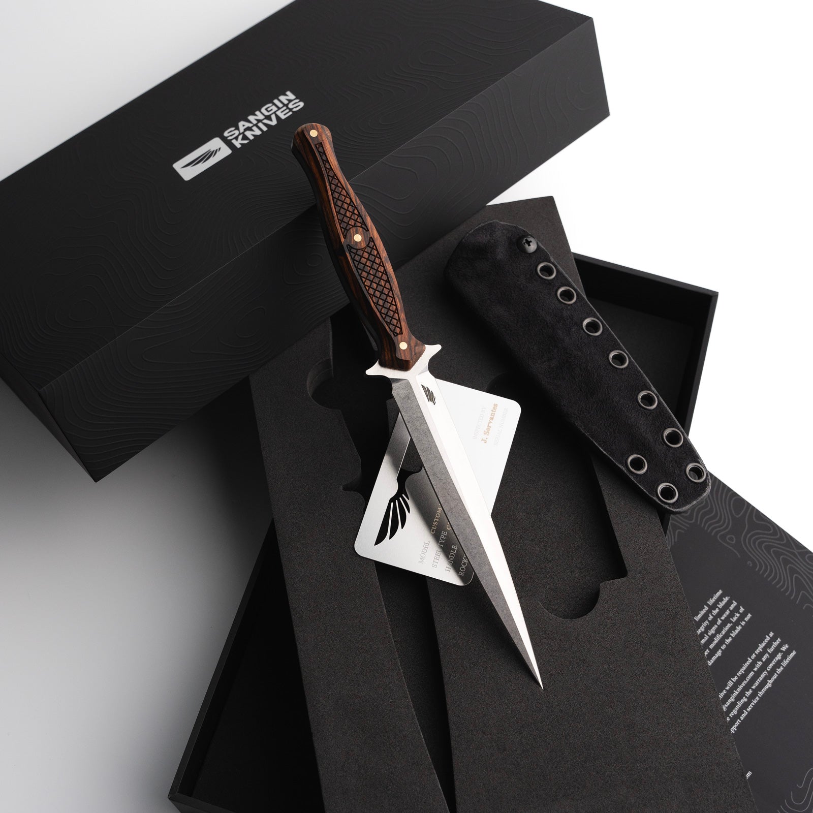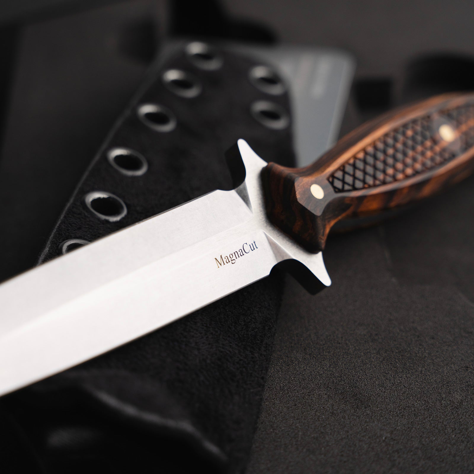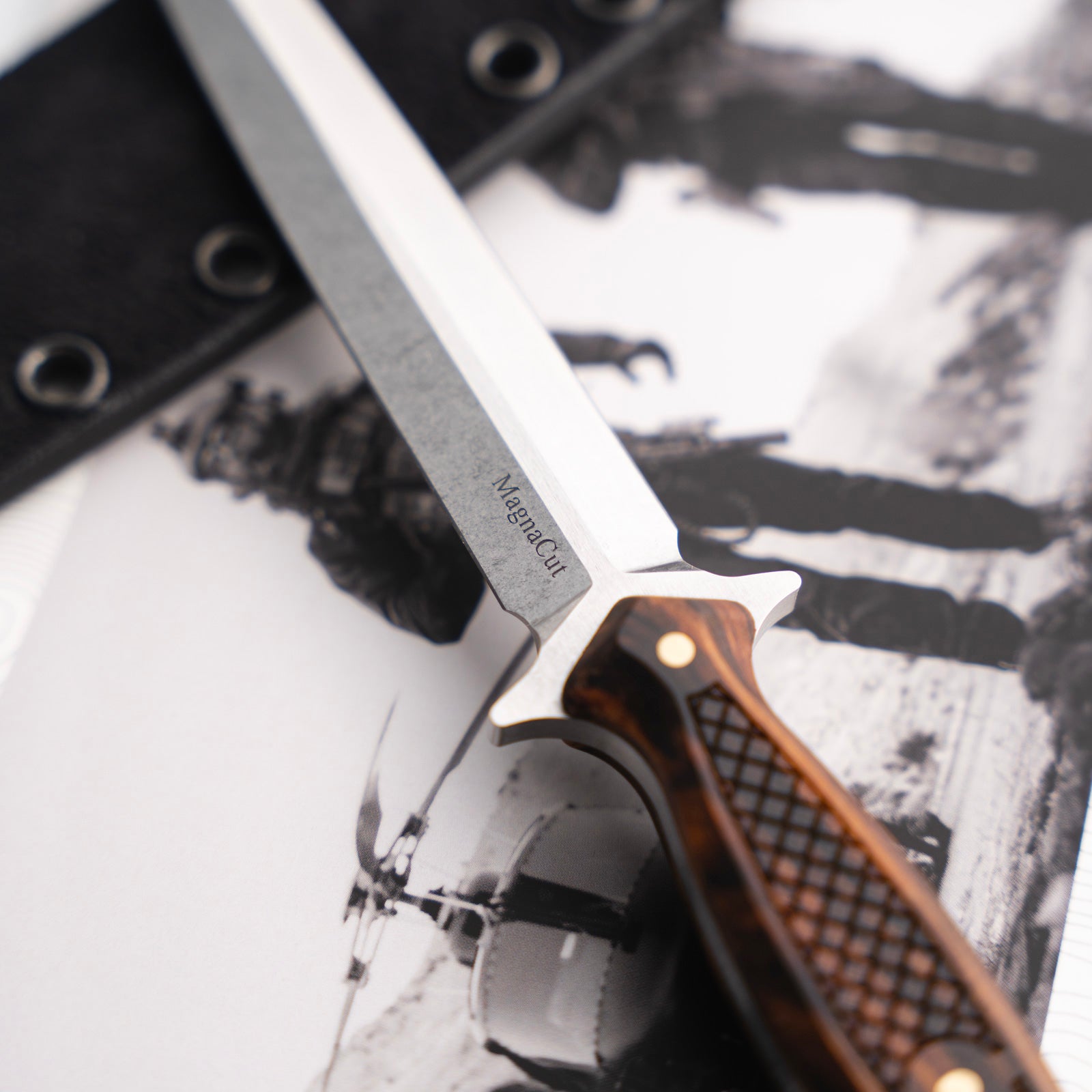 The Sangin Knives FKX Dagger is a modern and evolved version of the iconic commando daggers, constructed from CPM MagnaCut, one of the best steels in the world. Known for its exceptional edge retention, corrosion resistance, and ease of sharpening, CPM MagnaCut is explicitly designed for high-performance cutting tools. It offers superior toughness, making it capable of withstanding intense use without compromising durability. This advanced steel ensures that the FKX Dagger not only meets the demands of modern combat but also excels in functionality.