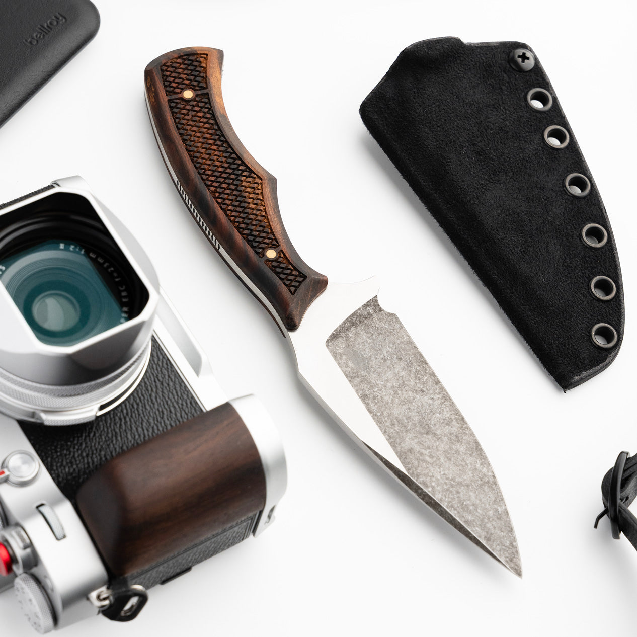 To ensure your knife is well-protected during transport, each Raider is accompanied by a suede-wrapped kydex sheath equipped with an ulticlip slim 3.3 belt mount, providing both convenience and security. This reimagined version of the Raider knife ultimately pays homage to the heart and soul of the original design crafted by Jake and Connor back in 2015, solidifying its place in the legacy of excellence that defines Sangin Knives. By choosing the Custom Ironwood Raider , you’re not just acquiring an exceptional knife; you are also embracing a tradition of quality and resilience that spans nearly a decade. Experience the extraordinary craftsmanship and history embedded within this knife, and own a piece of history that stands ready to serve in any adventure you embark upon.