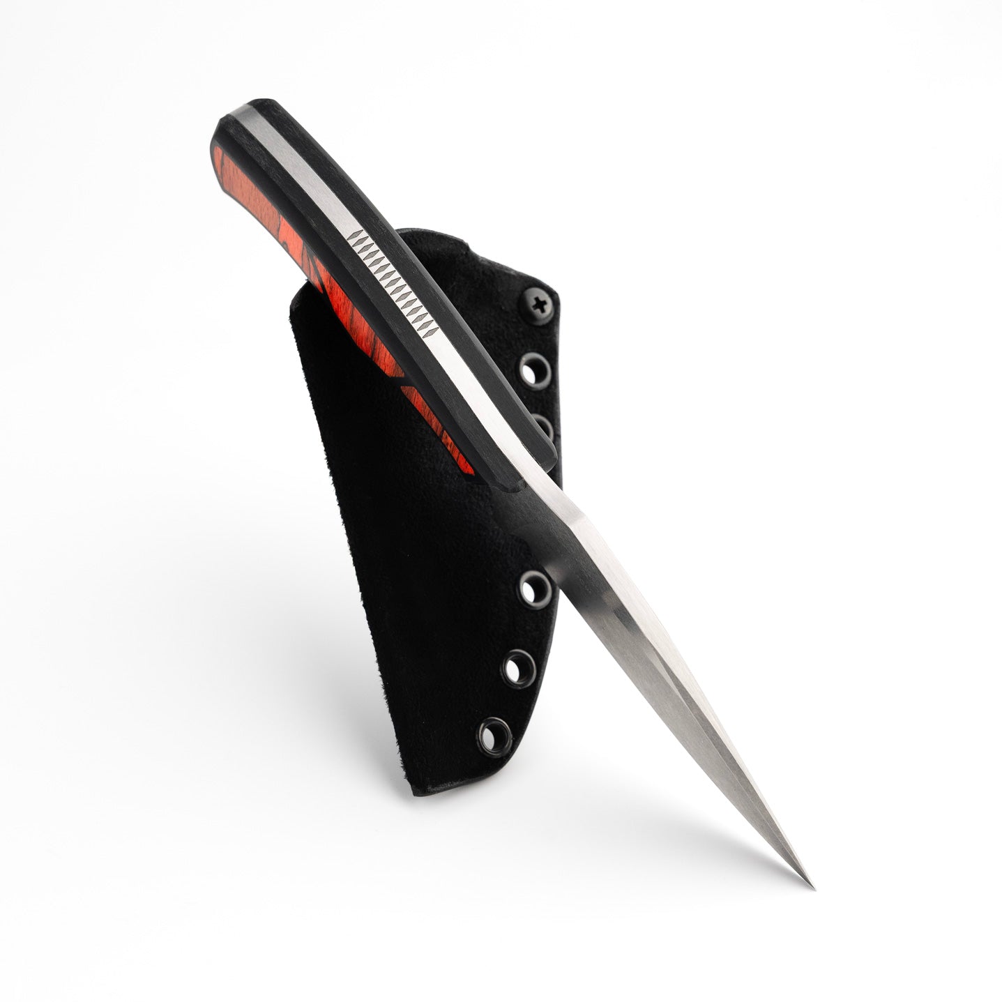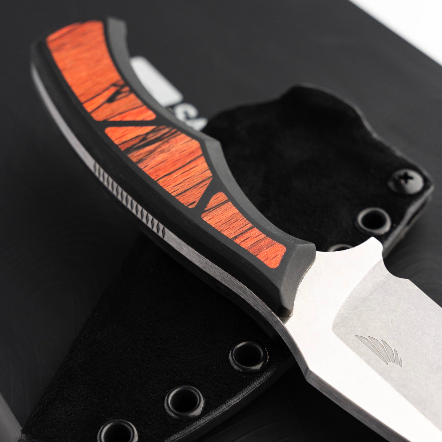 Introducing the Custom Red Spalted Beech Inlay Raider, a remarkable knife born from the visionary collaboration between Jake Servantes, the founder of Sangin Instruments, and Connor Toor of Toor Knives. This reimagined blade is a significant nod to their original creation from early 2015, designed specifically for the dedicated members of the Marine Raider Battalion. Disappointed with the unreliable nature of mass-produced knives in demanding situations, Jake sought out Connor’s expertise to develop a fixed blade that not only embodied unwavering reliability but also honored the exceptional craftsmanship that elite Marines deserved. The result was the original Raider knife, meticulously crafted in a distinctive drop point configuration, which quickly became a source of immense pride for its users, signifying strength and purpose without ever being made available to the general public.