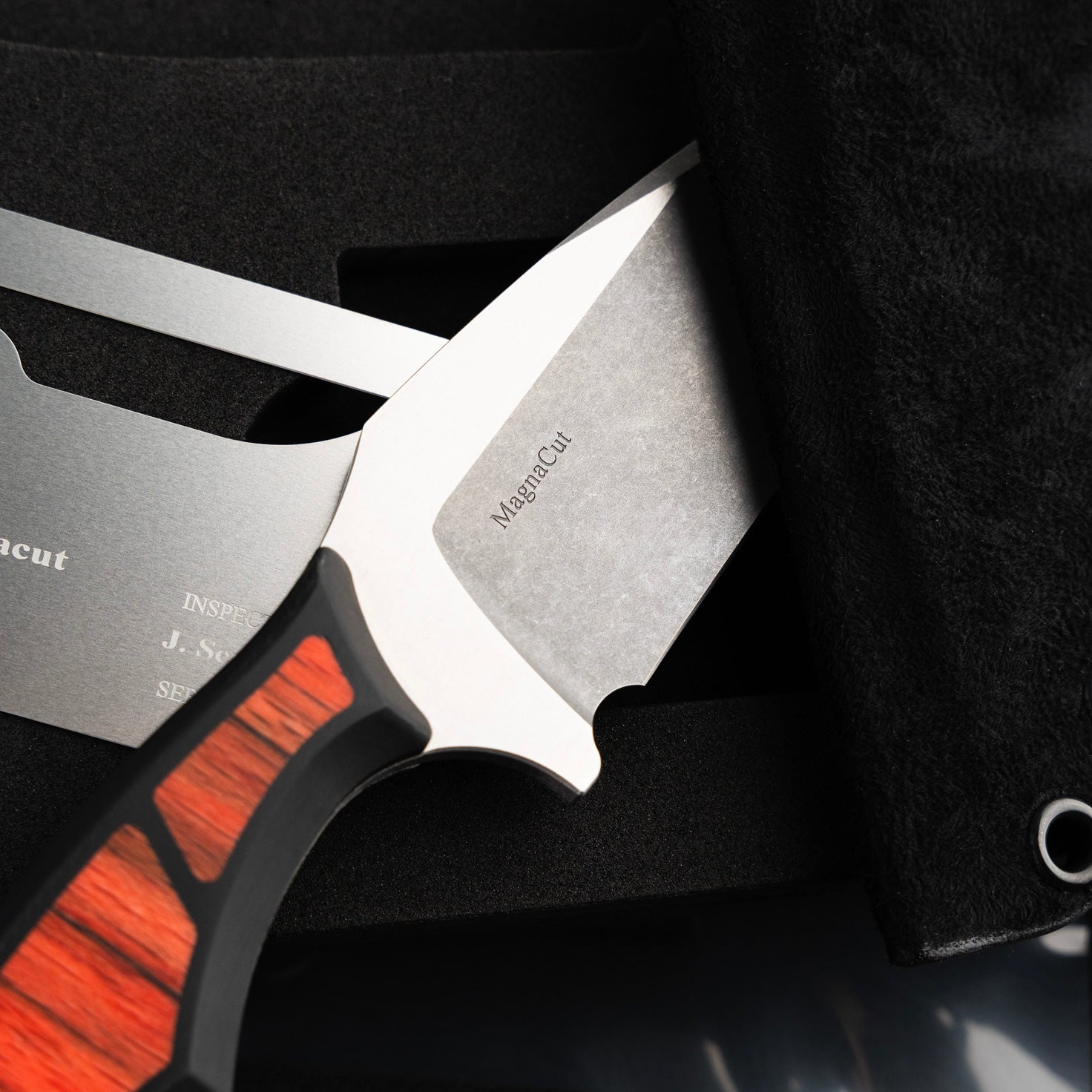 Fast forward nearly a decade, and Jake is thrilled to reintroduce the Raider under the Sangin Knives brand, breathing new life into the legendary design while simultaneously incorporating advanced technology and metallurgical enhancements. The latest iteration of the Raider is expertly constructed from CPM Magnacut steel, a revolutionary material celebrated for its exceptional balance of toughness, edge retention, and corrosion resistance. These desirable properties make the Raider ideal for a variety of environments, whether you are embarking on rugged outdoor adventures or tackling daily tasks. The blade has been intricately designed with expertly ground bevels at slightly different angles, which significantly enhances sharpening longevity, allowing users to maintain a razor-sharp edge with minimal effort. Additionally, a beautifully crafted false edge grind along the blade's top reduces puncturing resistance, further elevating the knife’s performance and versatility.